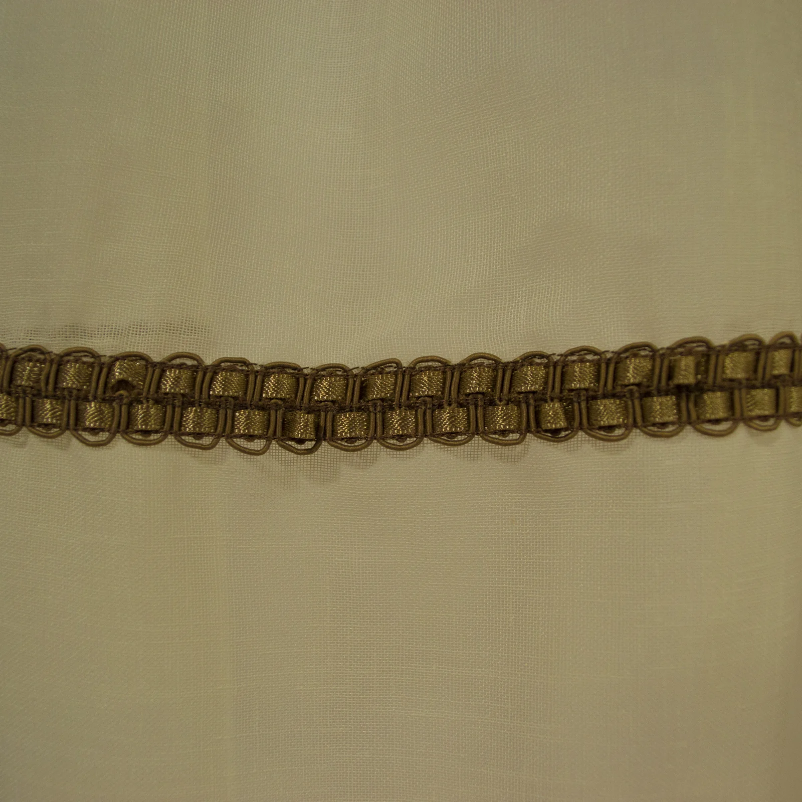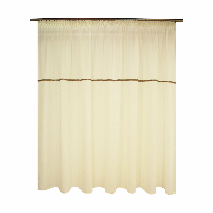 Perdea din in subtire de culoare unt, fir decorativ si plumb la baza. Este confectionata cu rejansa profesionala lata permitand prinderea pe sina de tavan si galerie cu inele.