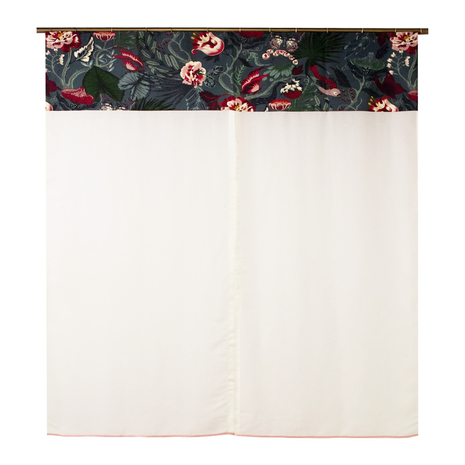Perdea Velaria din in ivoire cu flori, 140x170 cm