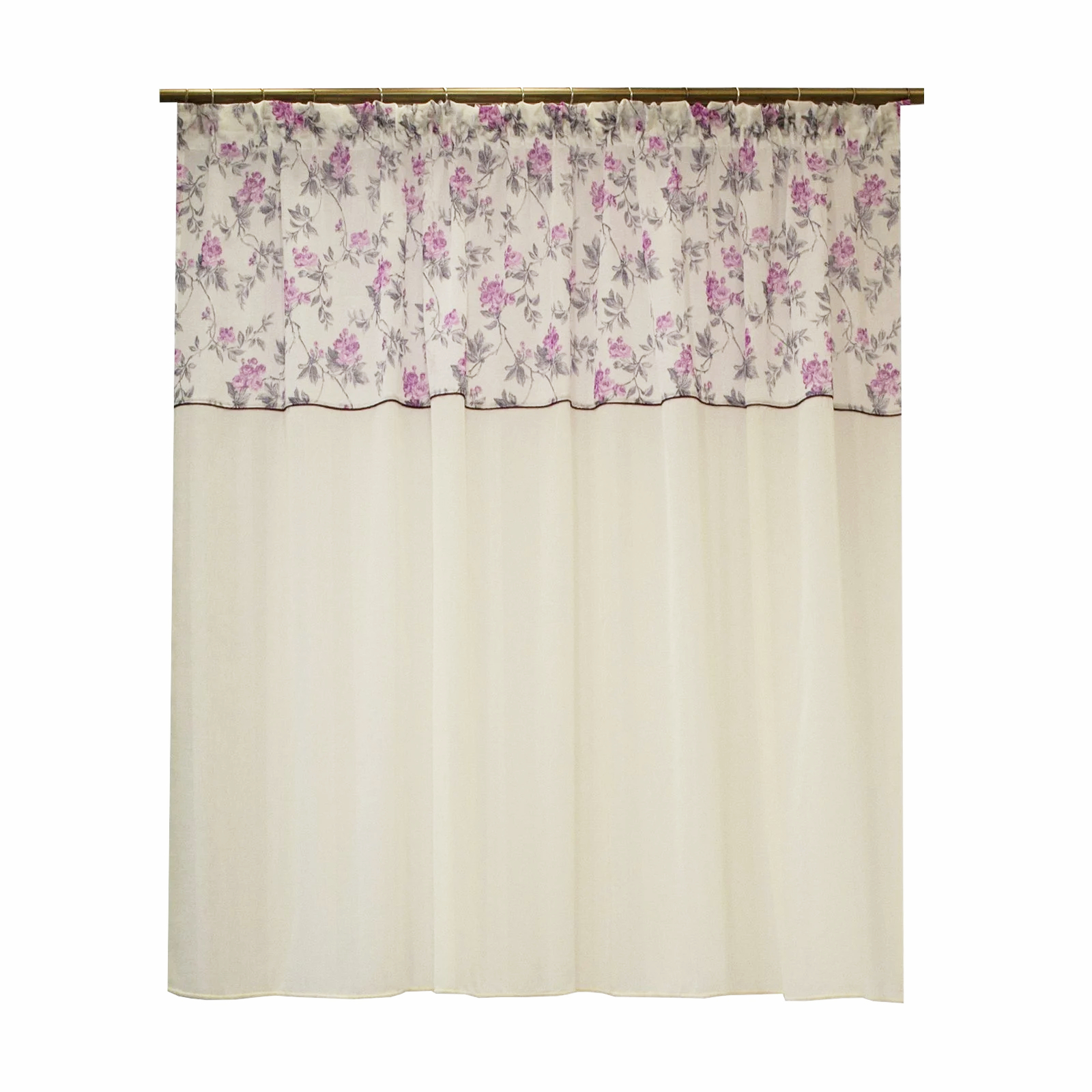 Perdea Velaria in ivoire cu flori mov, 210x145 cm