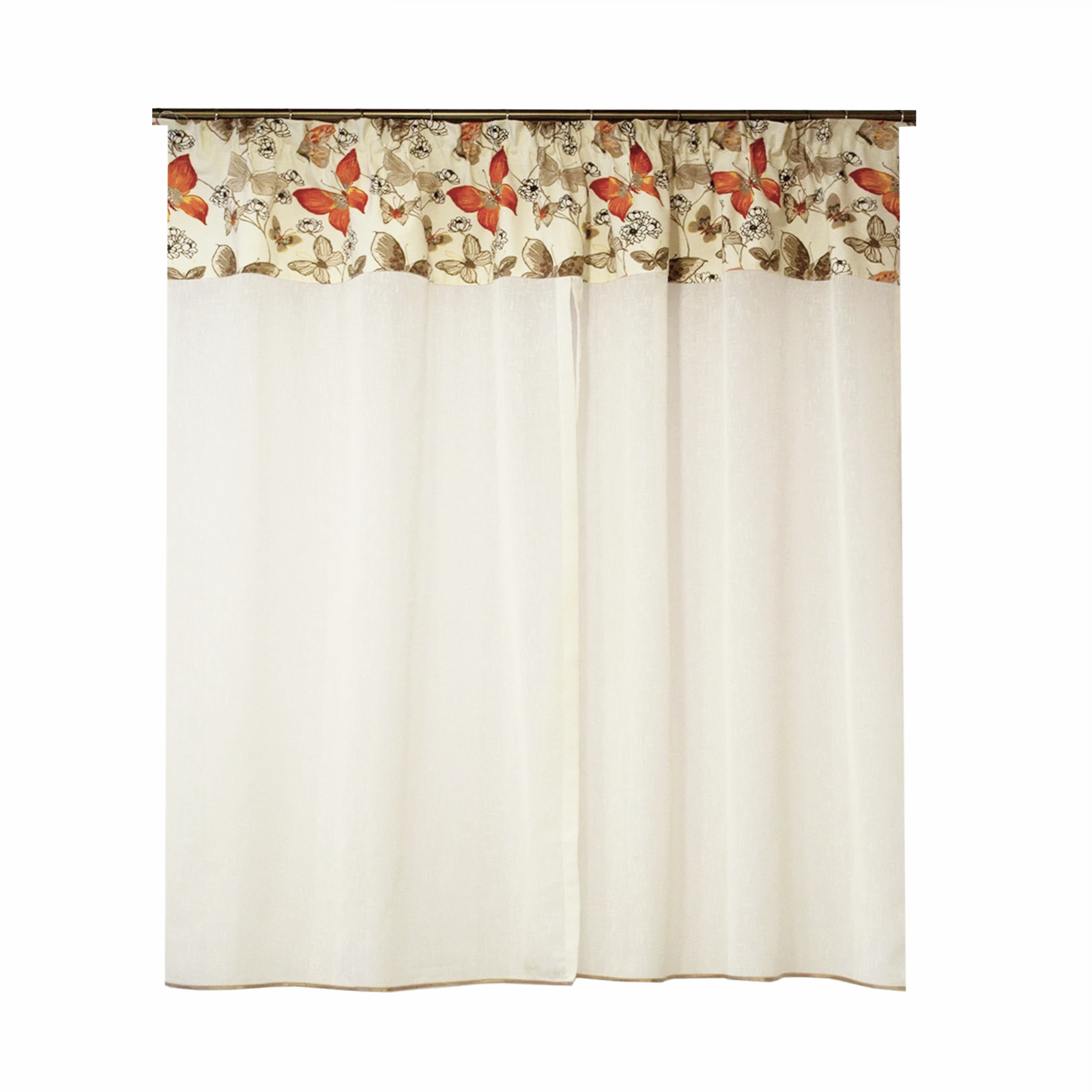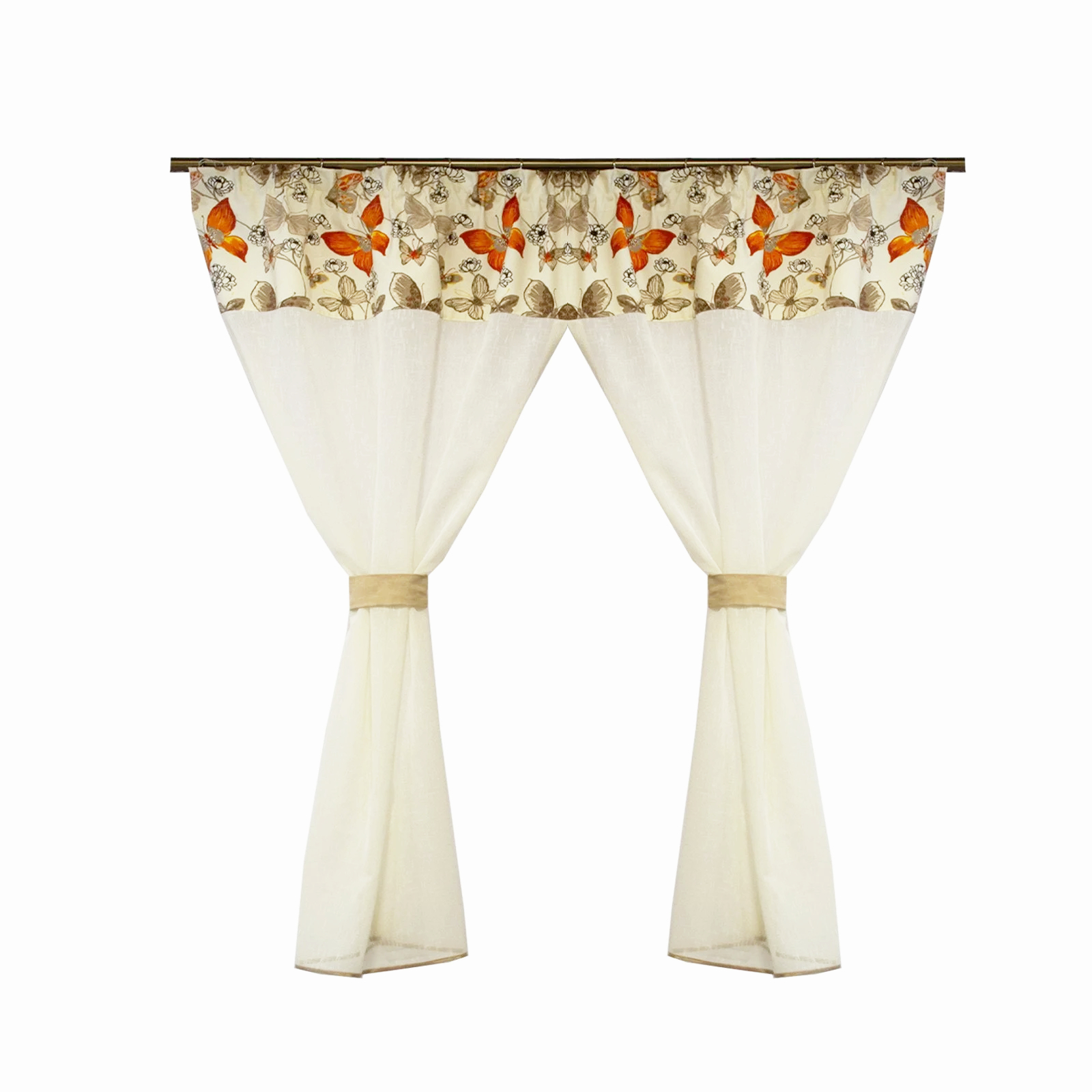 Perdeluta de bucatarie confectionata cu rejansa lata de 6 cm, permitand prinderea atat pe sina de tavan cat si pe galerie cu inele.