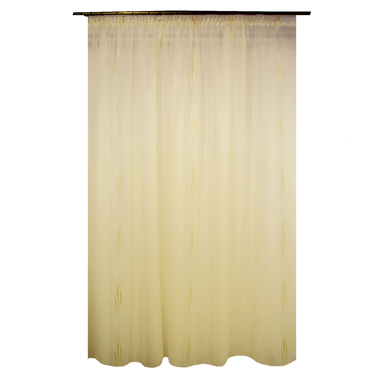 Perdea cu rejansa, confectionata din material transparent, cu imprimeu dispus pe verticala.