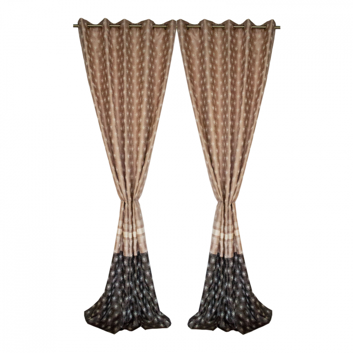 Set draperii Velaria cu rejansa ce permite prinderea atat pe sina de tavan cat si pe galerie cu inele, confectionat din material cu model baroc, in degrade.
